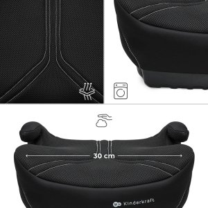 Kinderkraft I-BOOST 2 PRO je moderní podsedák navržený pro starší děti, který kombinuje vysokou úroveň bezpečnosti podle normy R129 i-Size s komfortem pro každodenní používání. Je určen pro děti vysoké 125–150 cm, přibližně ve věku 6 až 12 let. Praktické řešení, které roste spolu s dítětem a poskytuje ochranu i pohodlí v každé fázi cestování. Model se vyznačuje stabilní instalací ISOFIX, která umožňuje rychlé a bezpečné upevnění autosedačky do vozidla. Široké a měkké sedátko s pěnovou výplní, v kombinaci s prodyšným potahem AIR FLOW, zaručuje maximální komfort i během delších cest. Ergonomické opěrky rukou zvyšují pohodlí, zatímco praktické vodící prvky pásu pomáhají správně umístit bezpečnostní pás. I-BOOST 2 PRO má lehký a kompaktní design, který usnadňuje každodenní používání, a díky odnímatelnému potahu je čištění rychlé a snadné.
