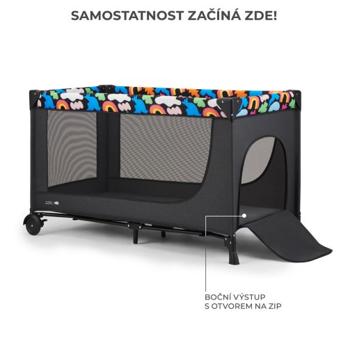 Dětská postýlka 2v1 - JOY 2 je jediná postýlka, která splňuje až 2 funkce: postýlka pro starší dítě a cestovní postýlka. Dětská postýlka má na boku výstup na zip, takže vaše děťátko může samostatně opustit svůj hrací prostor.