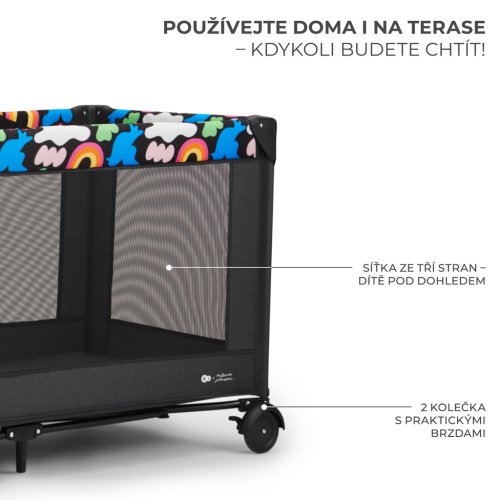 Do interiéru i exteriéru - JOY 2 je vhodná i pro venkovní použití – například na balkoně nebo terase. Síťované boční strany vám umožní mít dítě neustále na očích a zároveň zajistí dostatečné proudění vzduchu pro vaše děťátko během teplejších dnů.