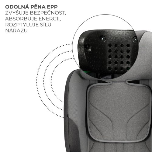 EPP pěna (extrudovaný polypropylen) Autosedačka I-FIX i-Size s EPP pěnou poskytuje dítěti nejvyšší úroveň bezpečnosti. Tento materiál, používaný v letectví a automobilovém průmyslu, dokonale pohlcuje energii nárazu, čímž snižuje riziko zranění. Díky použití tohoto materiálu ve skořepině a opěrce hlavy je autosedačka I-FIX i-Size mimořádně trvanlivá a odolná vůči vnějším vlivům, a tím lépe chrání dítě. Konstrukce sedačky je velmi pevná, odolná proti prasknutí a povětrnostním vlivům, ale zároveň lehká, takže se snadno přenáší. EPP pěna je také hypoalergenní a izolační řešení, které udržuje dítě v autosedačce v tepelném komfortu.