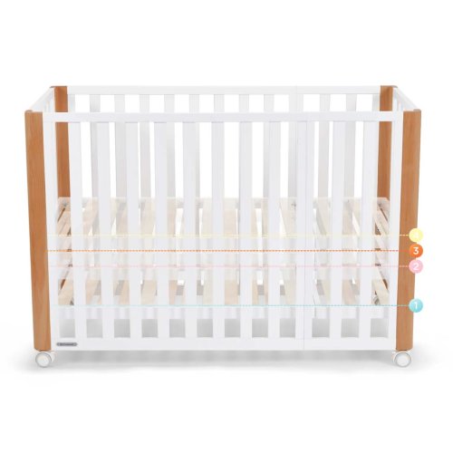 Další funkcí KOYA je možnost ji přeměnit na klasickou dětskou postýlku o rozměrech 120 x 60 cm. Díky standardním rozměrům můžete dokoupit matraci, která bude splňovat všechny vaše požadavky. Klasické rozměry KOYA vám také umožní vybrat si vhodné povlečení. A co je nejdůležitější, v takové postýlce bude moci spát dokonce starší dítě. Úroveň dna postýlky lze nastavit do 4 výšek.