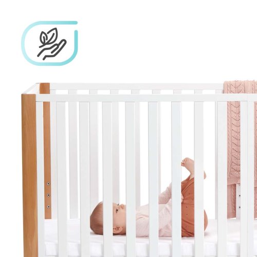Konstrukce byla vyrobena z přírodních materiálů: bukového dřeva a borovicového dřeva. Celá konstrukce je velmi odolná a pevná. Navíc jsou všechny hrany postýlky zaoblené a velmi pečlivě provedené. Všechno je natřeno barvami bezpečnými pro děti. Postýlku bude dítě používat po celou dobu kojeneckého období a raného dětství.