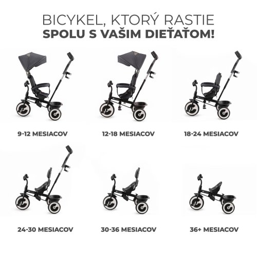 ASTON je tříkolka určená pro děti ve věku od 9 měsíců do asi 5 let. Je to dětské kolo, které roste s vaším dítětem. Díky různým nastavením ho snadno přizpůsobíte věku a výšce vaší ratolesti. Nejprve vám ASTON poslouží jako společník na procházky a to od chvíle, kdy se vaše dítě naučí sedět. Stačí otočit sedadlo čelem k sobě, připoutat dítě pásem a jede se!