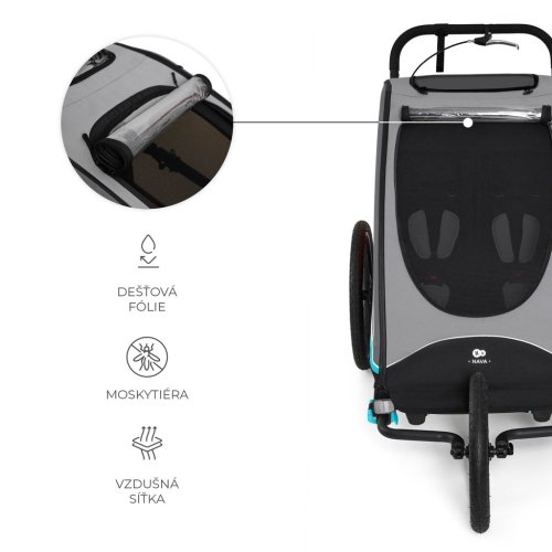 Vozík na kolo NAVA 3v1, sportovní kočárek a kočárek na běhání - na každé dobrodružství! NAVA je vozík na kolo, sportovní kočárek a kočárek na běhání v jednom výrobku, který je určen pro aktivní rodiny. Díky jednoduché změně funkcí a intuitivní montáži na kolo jej přizpůsobíte každé situaci - od každodenních procházek až po náročné cyklistické a běžecké trasy. Tento prostorný a bezpečný kočárek je vhodný pro jedno nebo dvě děti, uvnitř má kapsy na láhve, nosič na větší příslušenství a další úložný prostor pro rodiče. Nafukovací kola a nastavitelné odpružení zaručují pohodlnou jízdu i na nerovném povrchu. Díky zabudované pláštěnce, moskytiéře, sluneční cloně a tónovaným bočnicím je kočárek NAVA připraven na každé počasí. Kromě toho se složí za několik vteřin a díky kompaktním rozměrům se snadno vejde do kufru auta, což usnadňuje jeho přepravu a skladování.