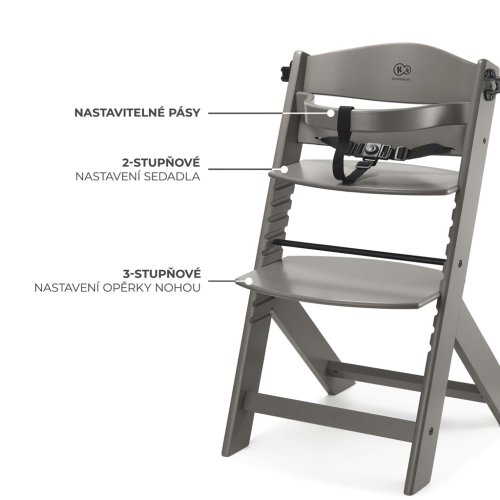 • nastavitelná opěrka nohou (4 kroky pro vysokou a 3 pro jídelní židličku) zvyšuje pohodlí dítěte během jídla - bez ohledu na jeho věk a výšku!