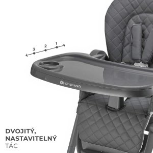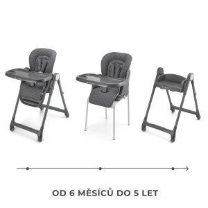 Kinderkraft TULO je funkční jídelní židle 3v1, která roste spolu s vaším dítětem – od prvních jídel až do předškolního věku. Dá se používat od přibližně 6 měsíců do 5 let, přičemž se přizpůsobuje potřebám dítěte v každé fázi. Díky modernímu designu a promyšleným řešením kombinuje pohodlí s úsporou místa, což z ní činí ideální volbu pro moderní rodiny, včetně těch, které bývají v menších prostorách.