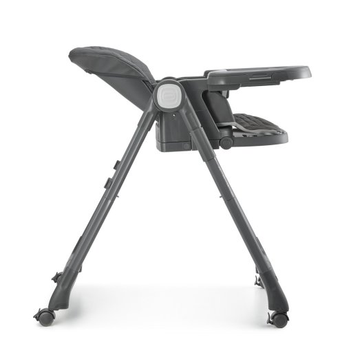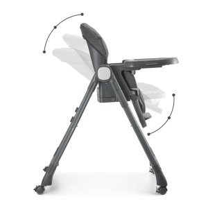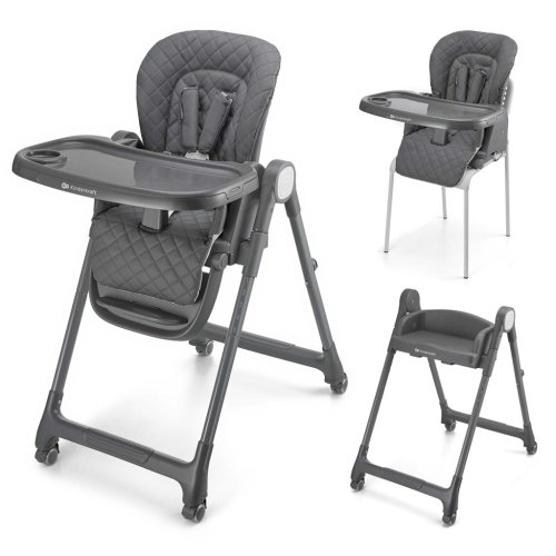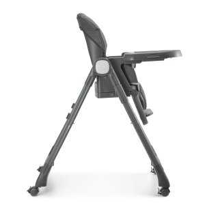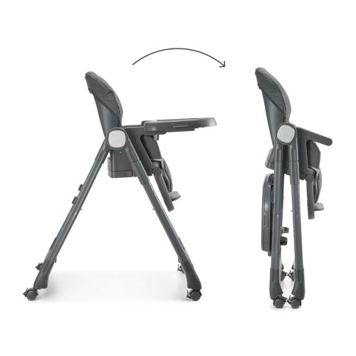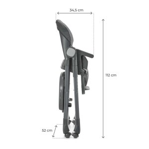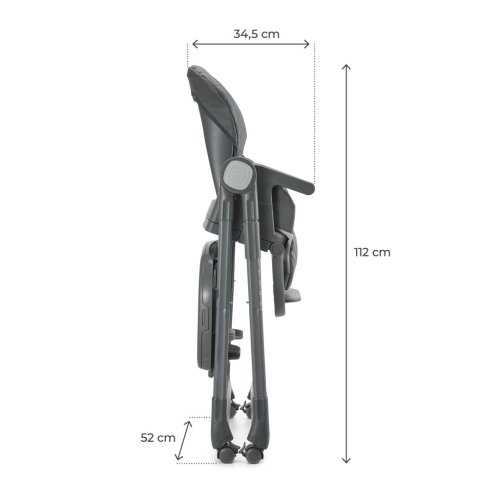 Integrovaná kolečka s brzdami, 5-bodové bezpečnostní pásy a měkké, snadno čistitelné PU čalounění zvyšují pohodlí a bezpečnost dítěte. Po složení má židle mimořádně kompaktní tvar, což usnadňuje její uskladnění. Zabírá minimum místa, takže se snadno vejde do rohu nebo skříně.