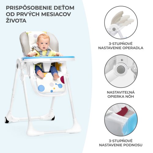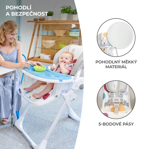 Jídelní židlička vhodná pro děti od 6 měsíců do 3 let.
