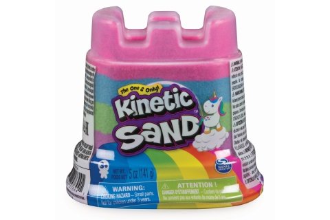 Balení s formičkami ve tvaru hradu obsahuje čtyři barevné vrstvy kinetického písku (141 g). Vhodné od 3 let.