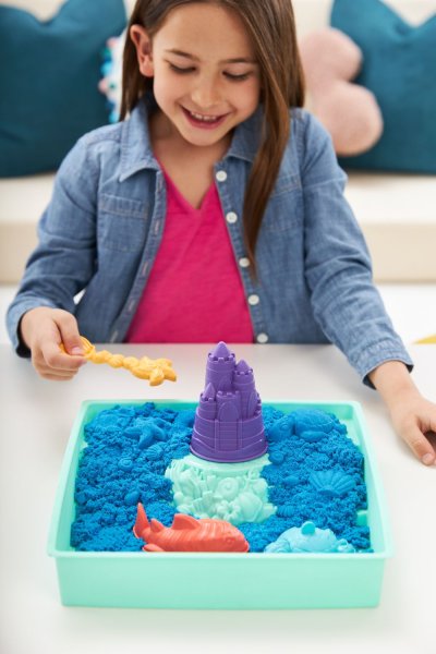 Vytvořte si vlastní dobrodružství na pískovišti se sadou kinetického písku Kinetic Sand Sandbox Set! Kinetický písek je originální kouzelný, tvarovatelný a fascinující smyslový písek. Protéká mezi prsty a nikdy nevyschne, takže si s ním můžete hrát znovu a znovu. Se sadou Sandbox si můžete hrát na pískovišti po celý rok! Jedinečné složení kinetického písku umožňuje ho snadno tvarovat, mačkat a tvořit z něj cokoli, co si jen dokážete představit. Ze 450 gramů modrého kinetického písku můžete stavět hrady, žraloky a želvy a ke kopání, nabírání, sypání a tvarování použít přiloženou lopatku. Součástí této sady kinetického písku je i dvoupatrový zásobník na písek ideální pro hru v interiéru. Mačkejte ho, krájejte, nabírejte, tvarujte - kreativní možnosti jsou se sadou Sandbox nekonečné! Vytvářejte z kinetického písku všechno možné a nechte si ho protékat mezi prsty – je to tak příjemný pocit, že nebudete moct přestat! Kinetický písek je vyroben z přírodního písku. Tato hrací sada je nejen skvělou alternativou k výtvarné modelíně, ale také úžasným přídavkem doplňkem k vašemu stolu s výtvarnými potřebami, dětskému tvoření a Montessori hračkám! Perfektní cool hračky pro holky i kluky, které podporují samostatnost a představivost. Pokud si s kinetickým pískem chcete užít ještě více zábavy, doplňte do své hrací sady velké sáčky s barevným pískem (prodávají se samostatně). Rozměry balení 28x28x7 cm. Věk 3+
