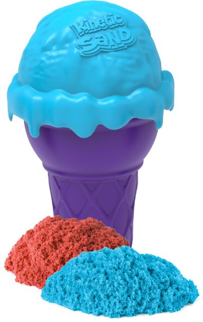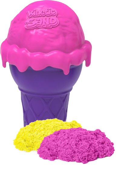 Děti od 3 let mohou doma kdykoli rozvíjet svou kreativitu s kinetickým pískem Voňavé zmrzlinové kornouty. Kinetický písek, vyrobený ve Švédsku, má kouzelnou tekoucí strukturu a je velmi dobře tvarovatelný, protože se lepí k sobě. Klasická hra na písku na výrobu a prodávání zmrzliny dostává nový rozměr díky nádobám na zmrzlinu s voňavým pískem. Nejen, že dva barevné písky v každé nádobě stimulují představivost, ale jejich vůně také ladí s danou barvou. Písek lze míchat a vytvářet nové barvy i vůně, takže je možné vytvořit úplně jakoukoli zmrzlinu. Protože kinetický písek nevysychá, kreativní zábava nikdy nekončí.