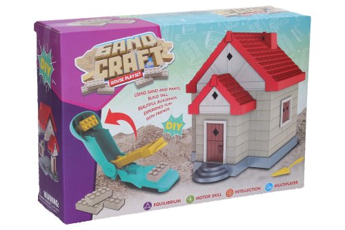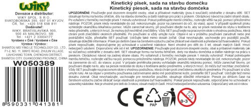Kinetický písek sada na stavbu s cihliček Dům. Obsah balení 750g. Obsahuje formu na tvorbu cihliček. Balení také obsahuje díly na stavbu domečku a další nástroje na práci s pískem. Obrázkový návod na zadní straně obalu. Po vytažení z formičky nechejte písek 1 minutu schnout. Pokud potřebujete menší cihličku, rozkrojte větší na půl, pomocí přiloženého nástroje.