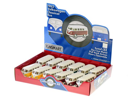 Kinsmart Autobus Volkswagen 1:32 13 cm kov zpětný chod - mix barev (zelená, červená, vínová, žlutá)