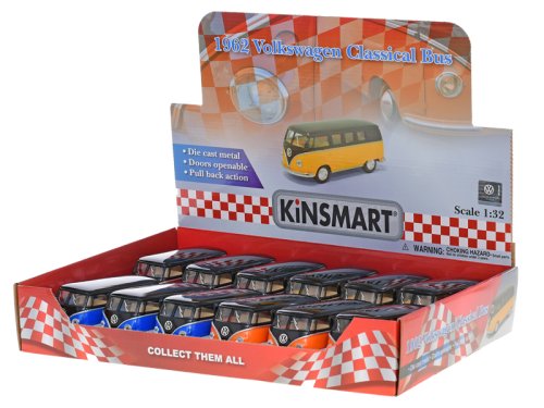 Kinsmart Autobus VW Classical 1962 1:32 13 cm kov zpětný chod - mix barev (oranžová, modrá, červená, žlutá)