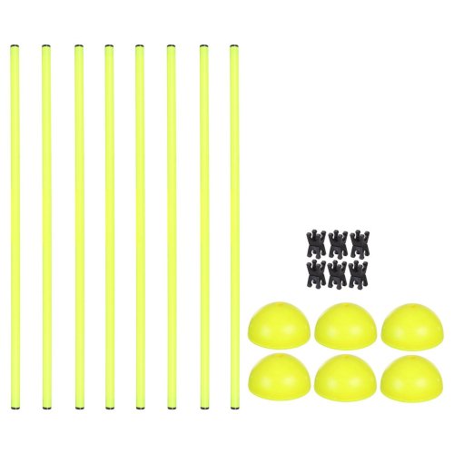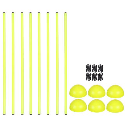 Sada agility překážek Kit Indoor 1.0 je skvělá pomůcka pro vaše tréninky v tělocvičně či hale. Agility překážky se hodí pro sportovce všech sportovních odvětví, kluby a školy. Díky překážkám si zlepšujete svou kondici, efektivně trénujete rychlost a koordinaci dolních i horních končetin. Výšku tyčí můžete upravovat dle libosti a nastavit tak obtížnost dráhy. Součástí sady je i praktická taška z polyesteru pro snadné přenášení a uskladnění mezi jednotlivými tréninky. Kopule lze naplnit pískem pro větší stabilitu. Parametry: - sada obsahuje: 9x tyč 100 cm; 6x základna; 6x spojka na tyče - materiál: PVC - hmotnost sady 3,6 kg - součástí praktická taška