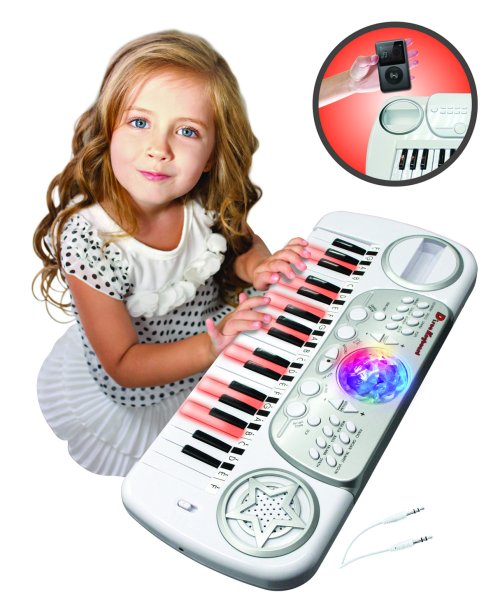Klávesy s disco koulí a mikrofonem. Rozměry 50x21 cm. Disco koule se světelnými efekty. 37 kláves (bílé, černé). Funkce - výuka (hrajte podle světýlek a naučte se hrát), 22 ukázkových skladeb, 8 nástrojů, 8 rytmů, nastavení rychlosti tempa, 4 bicí, nahrávání a následné přehrávání, nastavení hlasitosti, konektor na připojení mobilu/mp3 přehrávače, automatické vypínání pro úsporu energie. 4xAA baterie a kabel na připojení externího zařízení součástí.