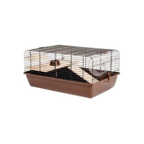 Klec vhodná pro křečky a další drobné hlodavce. Je vybavena dřevěným patrem, žebříkem a domkem. Dále plastovým kolotočem a miskou. Dráty klece jsou ošetřeny barvou. Dvoje dvířka pro snadnější obsluhu klece. Vybavení: dřevěné patro, žebřík a domek, plastový kolotoč a miska Rozměry: délka 58 cm, šířka 38 cm, výška 29 cm
