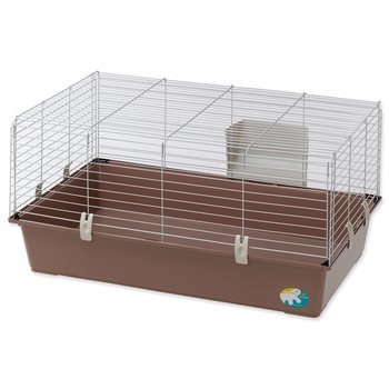 Prostorná klec Rabbit 100 pro králíky a morčata má celou přední stěnu otvíratelnou, což usnadňuje čištění klece a manipulaci se zvířetem. V případě potřeby lze otevřít pouze jednu polovinu přední stěny. Dráty klece jsou ošetřené antikorozní barvou bezpečnou pro zvířata. Všechny části klece jsou z recyklovaných materiálů. Součástí klece je vnější seník.