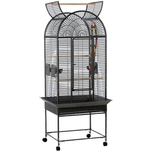 Voliéra Anna pro papoušky v hnědé barvě vhodná pro středně velké a větší papoušky. Klec se dodává se stojanem a je vybavená kolečky, čímž je umožněna pojízdnost klece a spodními ochrannými bočními lištami proti znečišťování okolí klece. Strop klece je půlkopulovitý a otevíratelný a po vložení bidýlka jej lze použít jako posed pro papouška. Spodní část klece je vysunovací pro jednodušší a pohodlnější čištění. Klec je opatřená ochranným krytem, který zabraňuje vypadávání semínek a nečistot. Váha klece: 31,7 kg. Rozměry: Rozměry bez ochranného krytu: 66 × 56 × 175 cm Rozměry s ochranným krytem: 78 × 68 × 175 cm – s otevřeným víkem Rozteč mezi dráty: 1,8 cm Síla drátu: 4 mm Vybavení: 2 bidýlka (1 bidýlko vnitřní, 1 horní), 3 nerezové krmící misky.