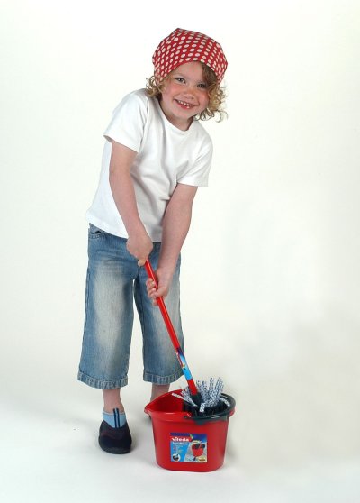 Pojízdný uklízecí vozík s koštětem, mopem, kyblíkem, košťátkem a lopatičkou, vše značky Vileda. Baleno v krabici. Vhodné pro děti od 3 let.