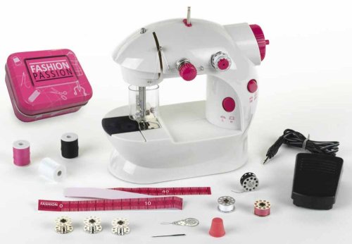 Funkční šicí stroj. Balení obsahuje: Šicí stroj, nožní pedál, 6 kovových cívek, náhradní jehlu, navlékač nití. Plastový kryt jehly, který chrání před poraněním.