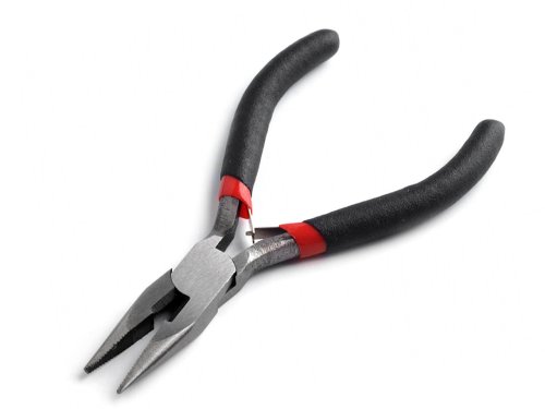 [Praktické kleště 2 v 1. V přední části mají zoubky, v zadní jsou ostré štípací čelisti. Přední část s malými zoubky] můžete použít na zamačkávání rokajlu, k uzavření koncovky na kůži, k práci se spojovacím kroužkem apod. Špička kleští je dostatečně tenká k otevírání bižuterních komponentů jako jsou ketlovací jehly, nýty nebo kroužky. Kleštěmi můžete také uštípnout drátek o tloušťce 0,3 mm nebo nylonové lanko, protože je v nich umístěna i štípací část. Mají drsnou rukojeť. [Vroubkovaná čelist k uchopení předmětů je dlouhá 1,8 cm, štípací část čelisti je dlouhá cca 8 mm.]