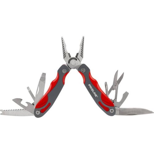 9 funkcí: kleště, plochá čepel, pilka, pilník, křížový šroubovák, plochý šroubovák, otvírák na láhve, otvírák na konzervy, nůžky