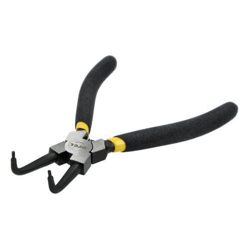 Kleště na vnitřní pojistné kroužky v zahnutém provedení k montáži a demontáži. Kleště se používají na upevňování ložisek na hřídelích nebo otvorech.