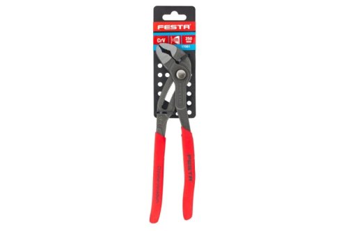 Kleště SIKO FESTA 250mm stavitelné s tlačítkem, jsou vyrobeny z kalené CrV oceli. Jednoduchý mechanismus nastavení požadované rozteče čelistí jednou rukou stiskem jednoho tlačítka. Odolný a přesný aretační mechanizmus. Tvar čelistí s broušenými zuby optimalizovaný k sevření trubek a matic. Posuvná rukojeť je opatřena měkčeným neklouzavým povlakem z gumy pro příjemnější práci. EAN 8590804027607