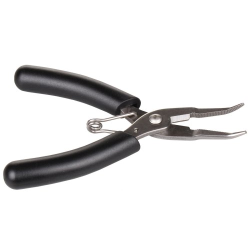 Kvalitní zahnuté kleště z legované oceli pro dlouhou životnost a s vroubkovanou čelistí pro perfektní uchopení struny. Nezbytný doplněk ke všem vyplétacím strojům. Délka kleští je 11 cm.