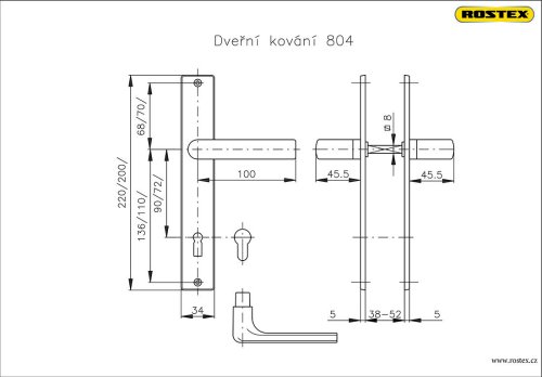 Dveřní kování klika se štítem 804/90 mm je vhodné pro dveře otevírané dovnitř.