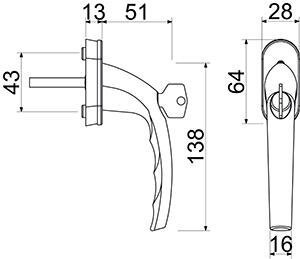 Hliníková uzamykatelná okenní klika se zinkovým jádrem. Uzamčení pouhým zatlačením vložky do kliky. Možnost uzamčení i při svislé poloze větrání. Aretace kliky po 45°.