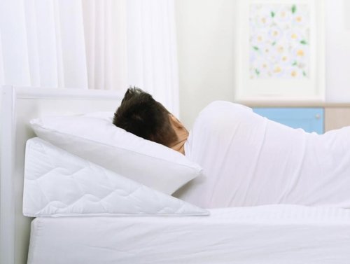 Klínový podhlavník s bavlněným froté potahem. Skvělá pomůcka do postele při čtení. Podhlavník vám pomůže udržet horní polovinu těla ve zvýšené poloze a usnadní vám lepší dýchání. Povlak je snímatelný se zapínáním na zip.