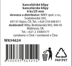 Kancelářský klip 6ks/25mm - nezbytná pomůcka do každé kanceláře! Klipy slouží ke spojení papírů.