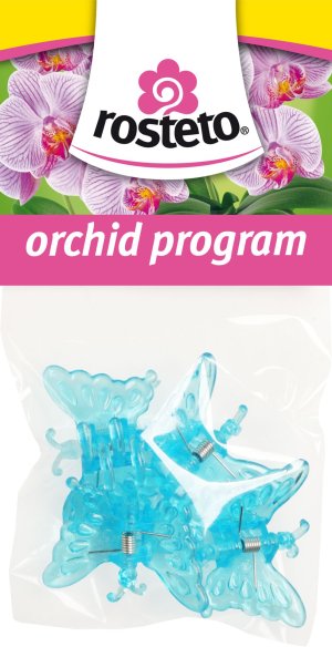 Dekorativní klipsy ve tvaru motýla slouží k uchycení květního stvolu orchidejí k opěrné tyčce. Jsou balené po 4 ks v igelitovém sáčku s EURO závěsem - pro možnost zavěšení na stojan.