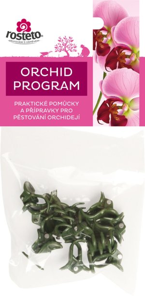 Dekorativní klipsy slouží k uchycení květního stvolu orchidejí k opěrné tyčce. Jsou balené po 10ks v igelitovém sáčku s EURO závěsem - pro možnost zavěšení na stojan.