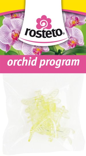 Dekorativní klipsy ve tvaru vážky slouží k uchycení květního stvolu orchidejí k opěrné tyčce. Jsou balené po 4 ks v igelitovém sáčku s EURO závěsem - pro možnost zavěšení na stojan.