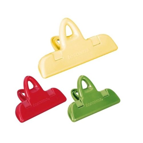 Klipsy na sáčky Tescoma Presto - vynikající pro uzavření sáčků, potraviny zůstanou déle svěží Vyrobeno z odolného plastu, vhodné do ledničky a myčky Sada obsahuje 3 ks: 1x šíře 11 cm, 2x šíře 7 cm Barva: …