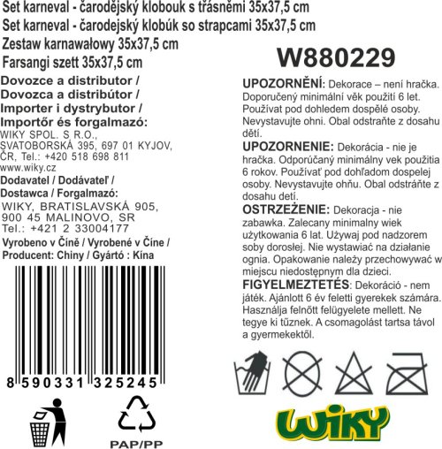 Klobouk na karneval jako doplněk ke kostýmu čarodějnice nebo čaroděje. Pokud se chystáte na párty nebo halloweenskou oslavu tento klobouk nesmí chybět ve vašem šatníku.