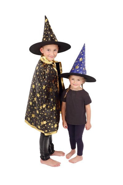 Dětský čarodějnický klobouk je inspirován světem kouzel a magie. Je modrý a zdobený zlatými hvězdami, které vzbuzují čarodějnický dojem. Děti si mohou hrát na kouzelníky a kouzelnice, zkoumat svět kouzel a vytvářet své vlastní příběhy plné dobrodružství a fantazie. Čarodějnické klobouky jsou oblíbenou součástí karnevalových a halloweenských kostýmů. Není hračka