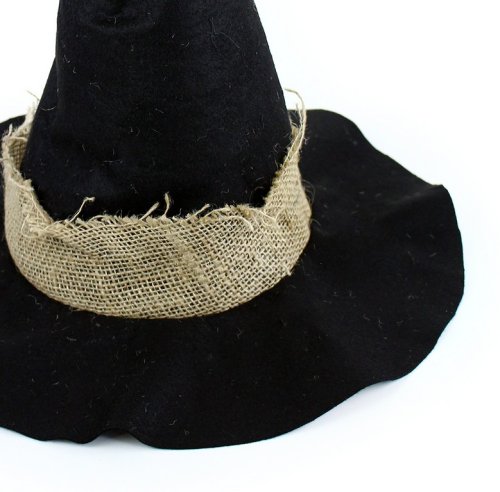 Čarodějnický klobouk je určen pro dospělé. Klobouk černé barvy je dekorován pruhem z pytloviny. Perfektní doplněk na Halloween párty nebo karneval!