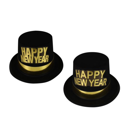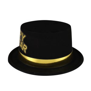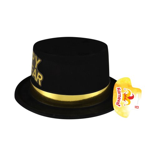Černý klobouk se zlatým lemem a nápisem HAPPY NEW YEAR je senzačním doplňkem na oslavu nebo večírek při vítání Nového roku!