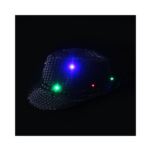 Rozjeď tu pravou disko párty s tímto senzačním kloboukem! Stylový klobouček černé barvy je zdoben flitry, a navíc po zapnutí barevně bliká - 3 rychlosti blikání (při každém dalším zmáčknutí se rychlost blikání změní). K aktivaci světýlek použijete nenápadné tlačítko, které je umístěno na boku klobouku. 3 baterie typu LR44 jsou jeho součástí.
