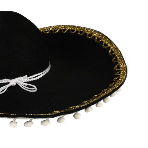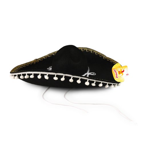 Černé sombréro s bílými bambulkami a se šňůrkou je slušivý doplňkem ke kostýmu Mexičana. Černé sombréro můžete nosit jako součást mexického kostýmu nebo kostýmu na téma západu. Tento klobouk Vám dodá autentičnost a působivý vzhled.