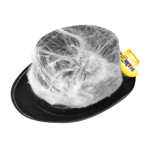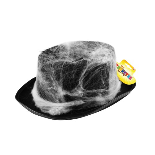 Tajemný černý klobouk pokrytý pavučinou s pavouky je to pravé na halloveenskou párty nebo karneval.
