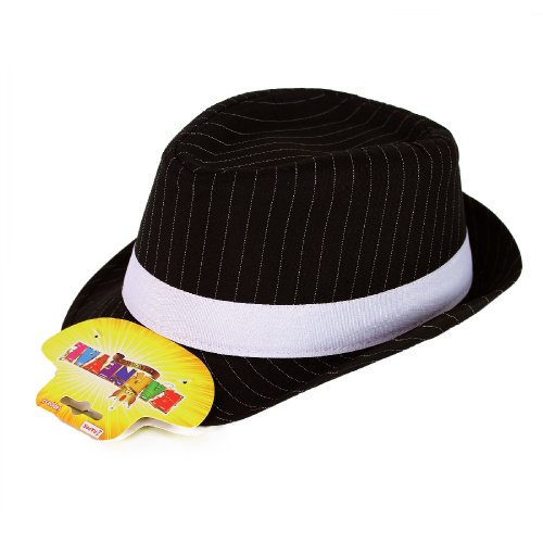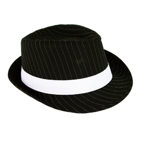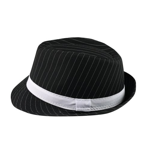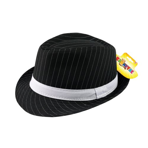 Stylový klobouk pro dospělé! Tento elegantní kousek v černé barvě s tenkým bílým proužkem a zdobený stuhou je vysoký 12 cm. Skvěle se hodí ke kostýmu, nebo jako báječný doplněk na vaši párty.