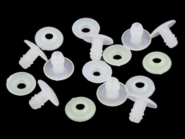 Bezpečnostní klouby použijete na plyšové, háčkované a jinak vyrobené zvířátka a postavičky. Slouží k upevnění končetin. Část s vrutem se propíchne končetinou, následně se vpíchne do těla a tam se z druhé strany upevní nacvaknutím pojistky. Končetina se tak bezpečně přichytí bez šití a zůstane pohyblivá (otáčivá). Balení obsahuje vruty i pojistky. Délka vrutu je cca 1,3 cm.