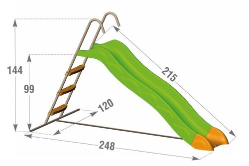 Klouzačka TOR je vyrobená vstřikovací metodou a z toho vyplývá její vysoká pevnost a odolnost. Dvojité prohnutí kluzáku = „dvojitá vlna“ při klouzání ! Veselé jasné barvy kluzáku i schůdků , KOVOVÝ rám v pískové barvě z trubek Ø 30mm , pevné schůdky s protiskluzovou úpravou – vzorem. Rozměry jsou 2,15 dlouhá a šíře kluzáku 42cm