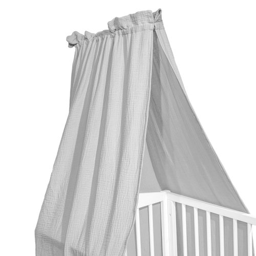 Baldachýn na postel z jednobarevného bavlněného mušelínu je dokonalým doplňkem do dětského pokoje. Tento lehký a vzdušný materiál zajišťuje pohodlný spánek a vytváří útulné prostředí v dětském pokoji.