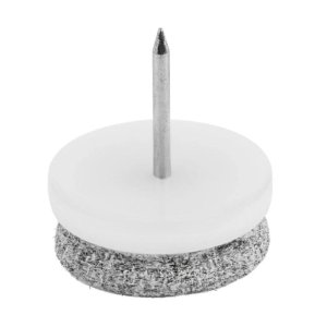 Filcový kluzák s hřebem o průměru 24 mm anebo 28mm v bílé barvě K přibití pod nábytek, se kterým pohybujete po podlahách s kluzným povrchem a chcete předejít jejímu poškrábání Ideální pro tichou manipulaci …